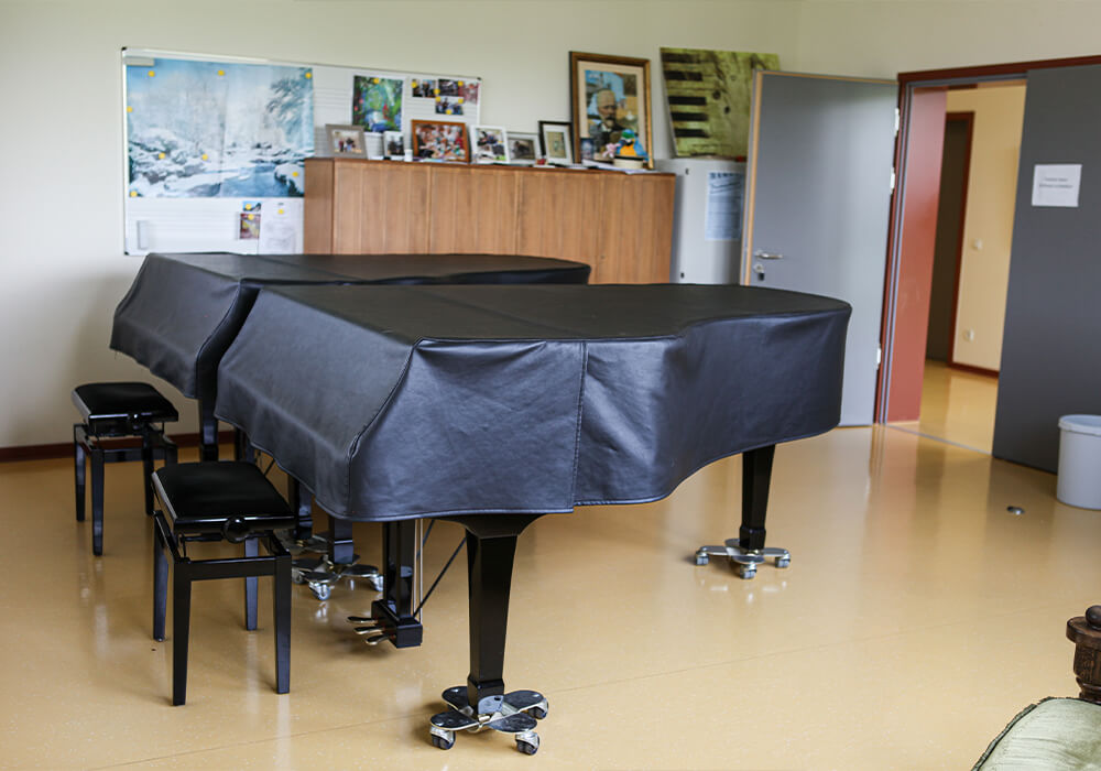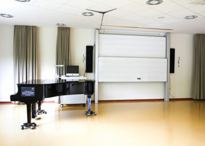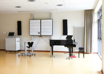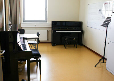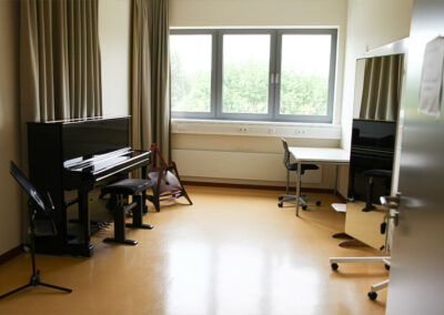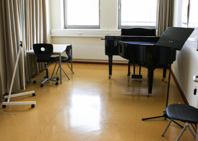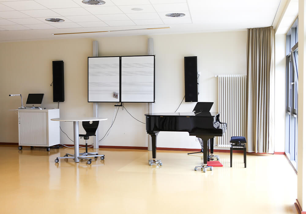 Das Musikgebäude ist zentraler Bestandteil unserer Schule und ein wesentlicher Faktor für die hohe Qualität der musikalischen Bildung am Landesmusikgymnasium. Durch seine funktionale und durchdachte Architektur bietet es optimale Bedingungen für eine umfassende musikalische Ausbildung und ist darauf ausgelegt, vielfältige Unterrichtsformen zu unterstützen. Schülerinnen und Schüler erhalten hier die Möglichkeit, ihre musikalischen Fähigkeiten in einer professionellen Umgebung optimal zu entwickeln.