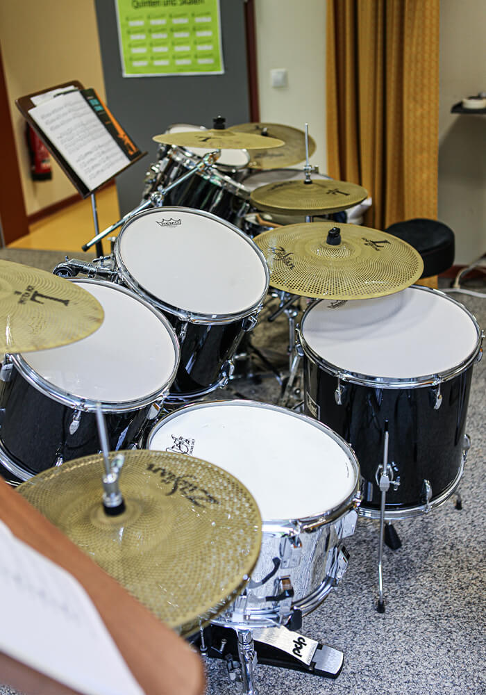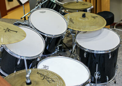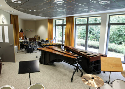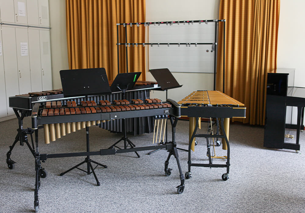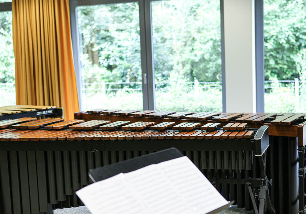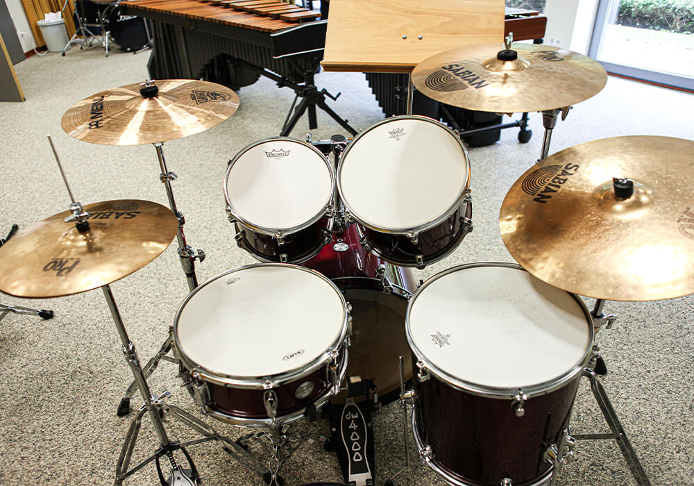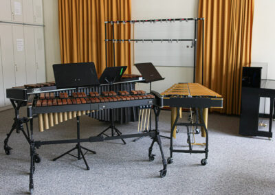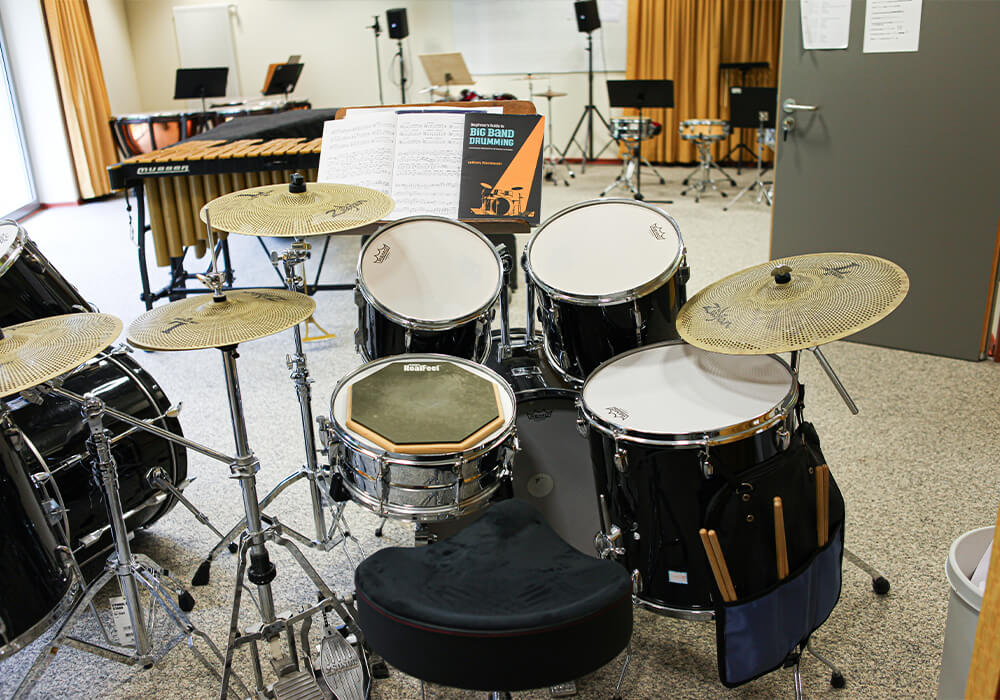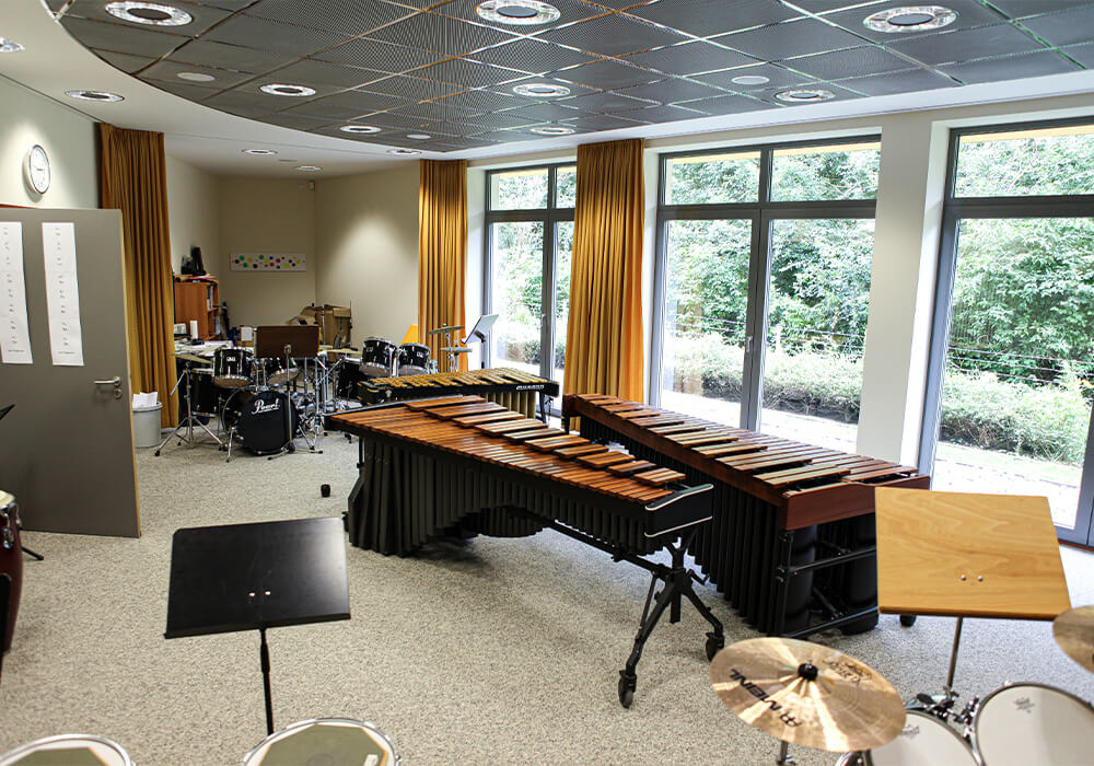 ein hochwertiges und umfangreiches Instrumentarium und Equipment in allen Unterrichts- und Probenräumen