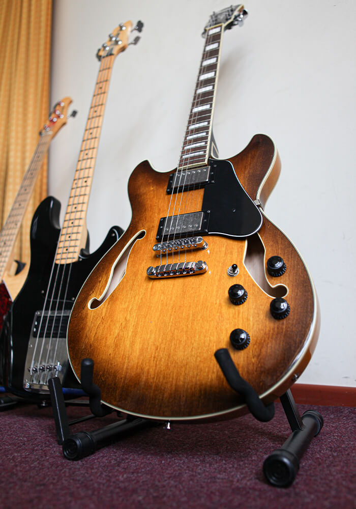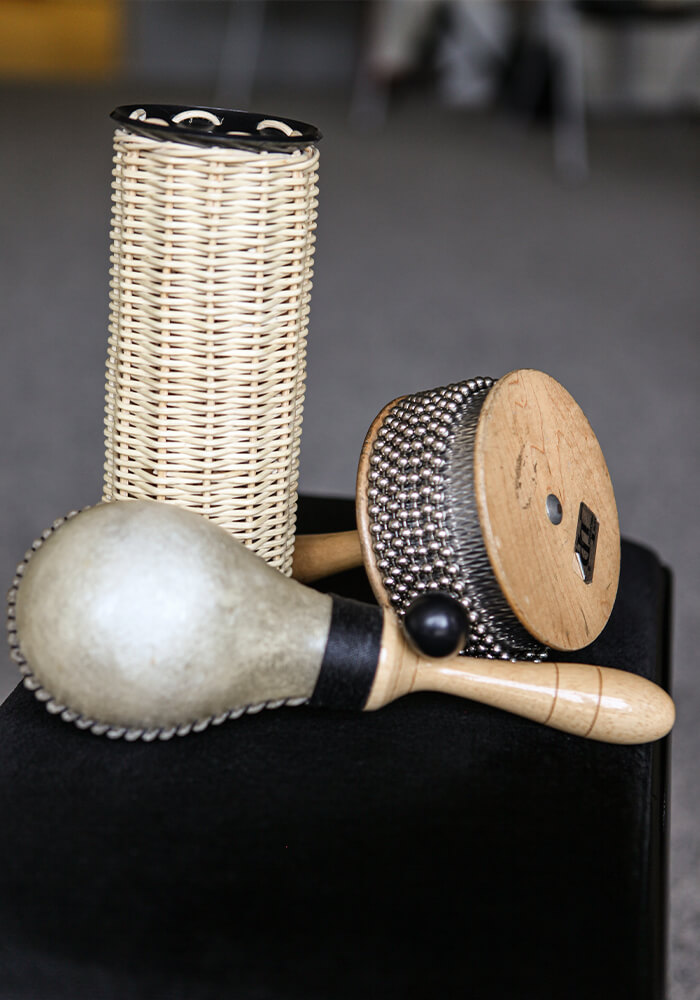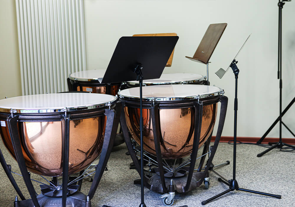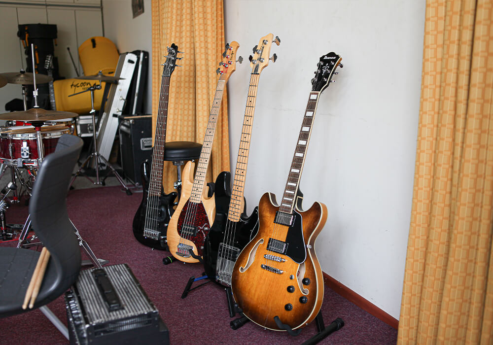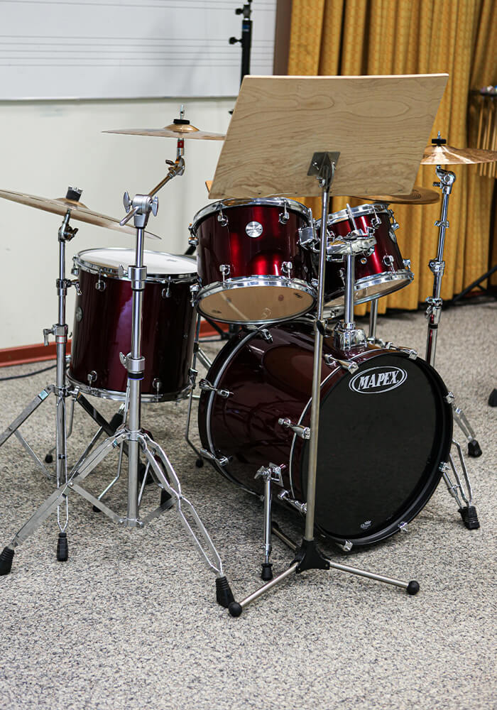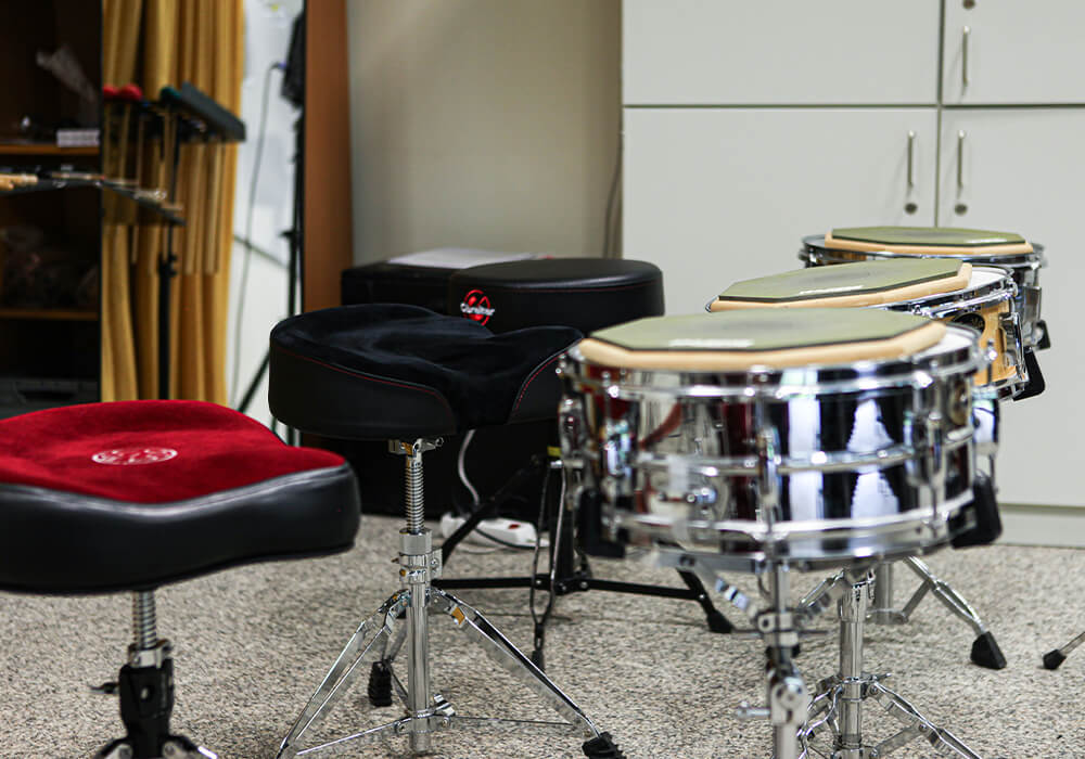 ein hochwertiges und umfangreiches Instrumentarium und Equipment in allen Unterrichts- und Probenräumen