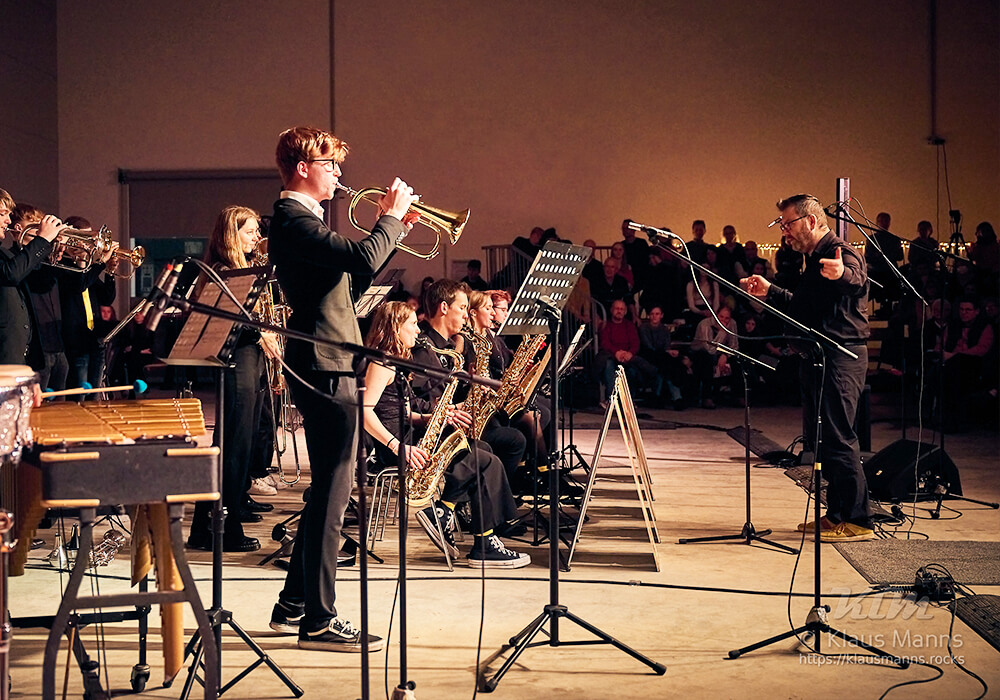 Ein besonderes Interesse der Band gilt aber auch zeitgenössischen deutschen Big Band Arrangeur*innen, deren Stücke sie in gemeinsamen Workshops einarbeiten.