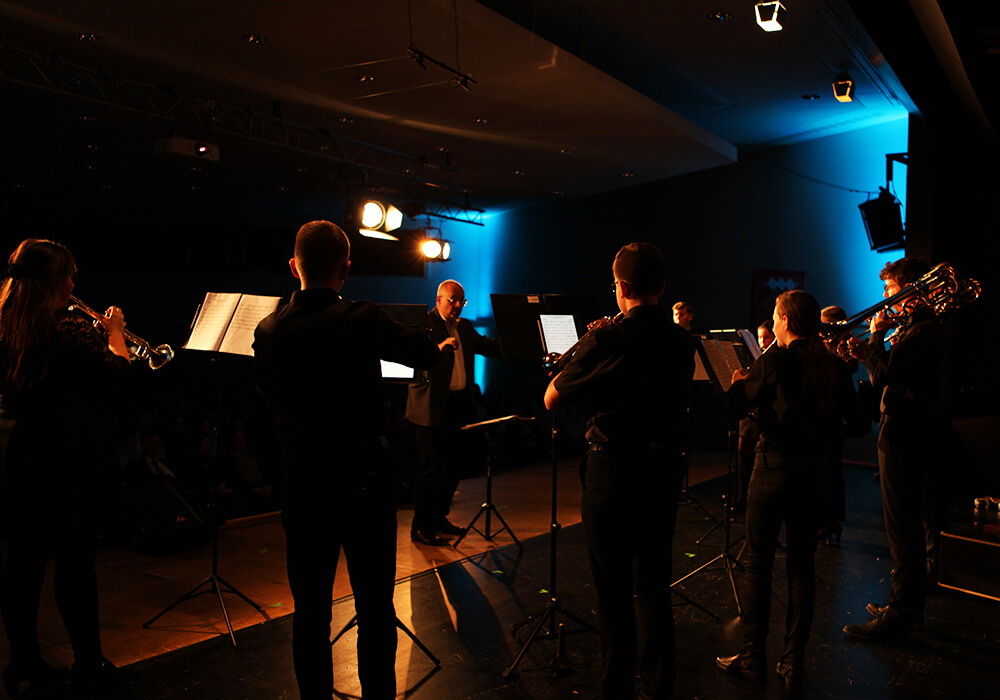 Das Blechbläserensemble besteht seit den Anfängen des Landesmusikgymnasiums. In unterschiedlichen Besetzungsstärken reicht das Repertoire vom vierstimmigen Bachchoral bis zu zehnstimmigen Klassikern für großes Blechbläserensemble wie die „Brass cats“ von Chris Hazell.