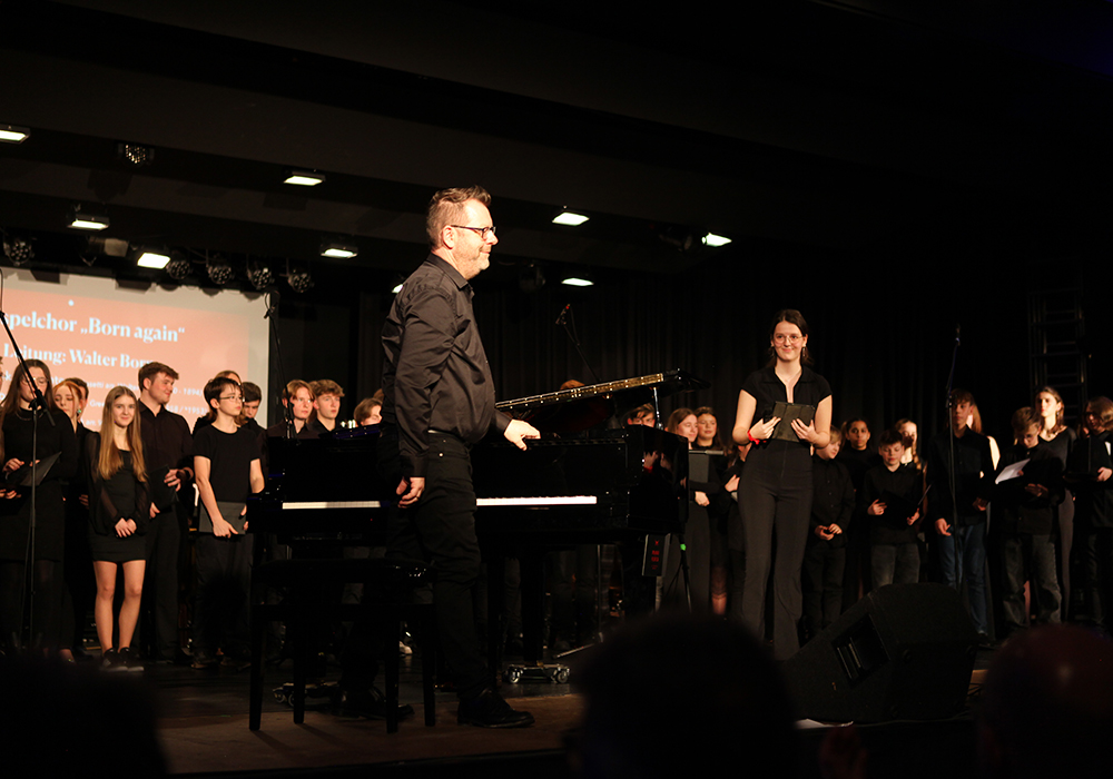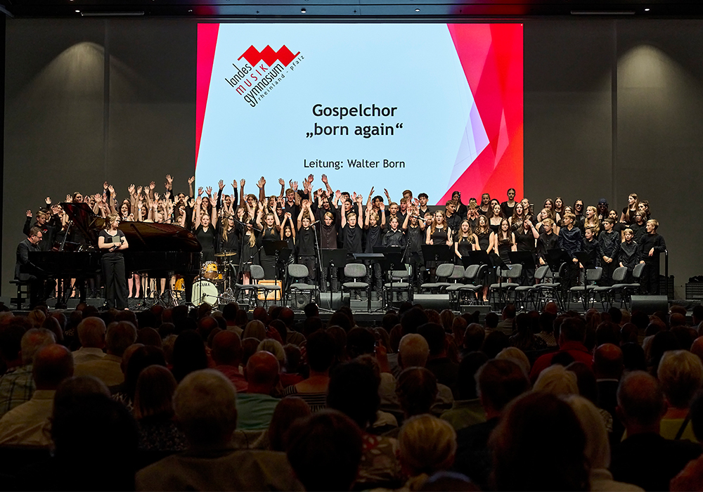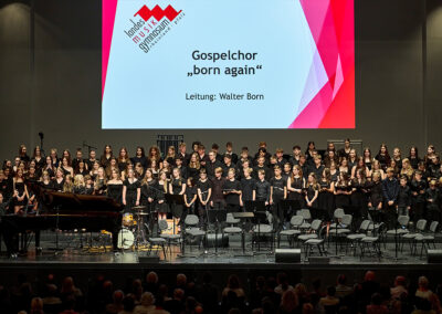 Der Gospelchor des LMG wurde 2015 unter dem Namen „born again“ gegründet und besteht aus bis zu 100 Sängerinnen und Sängern. Der Chor präsentiert sich jung, dynamisch und farbenfroh, der Gesang reicht von atemberaubend und mitreißend bis zutiefst emotional, so dass dem Zuhörer hie und da eine Gänsehaut auf den Körper gezaubert wird.