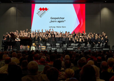 „Born again“ ist ein schwungvoller und mitreißender Gospelsong – genauso mitreißend wie der Chor, der ihn gerne zu Gehör bringt. Gospel, Jazz und Pop stehen im Mittelpunkt des Repertoires. Aber es werden gerne auch mal andere Projekte durchgeführt wie z. Bsp. die Missa Nova (Konzert April 2024). Unvergessliche Momente sind auf jeden Fall garantiert. Viele Solisten bereichern die vielfältigen Facetten des Ensembles, das von einer eigens zu diesem Zweck engagierten Band begleitet wird.