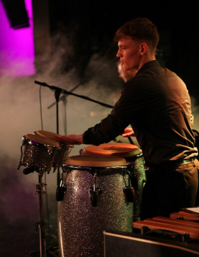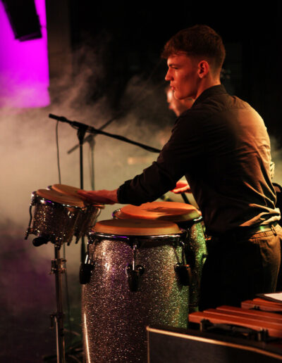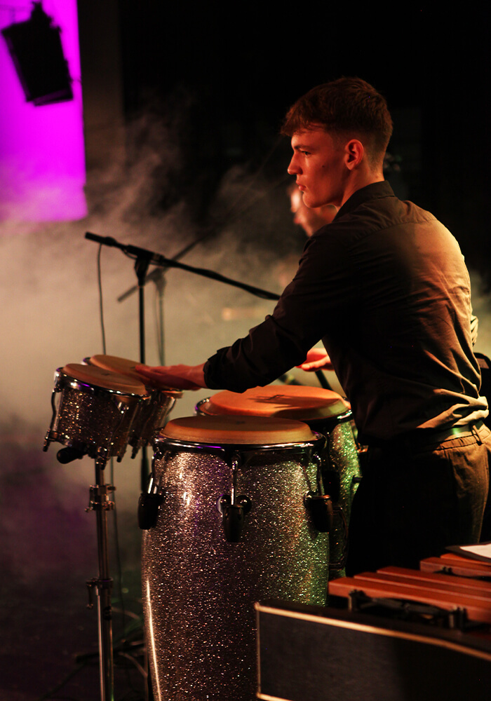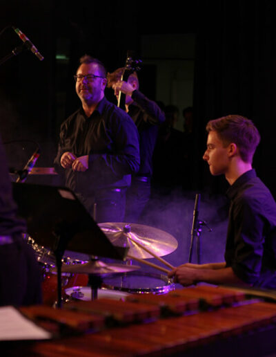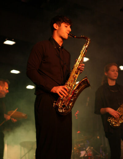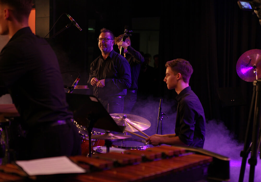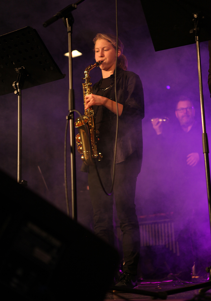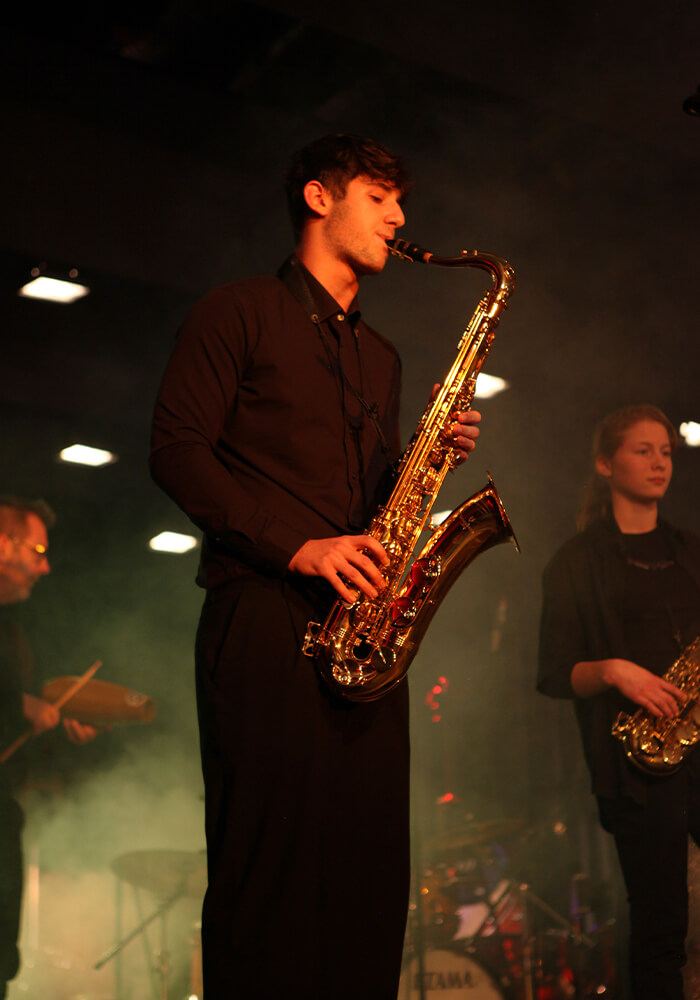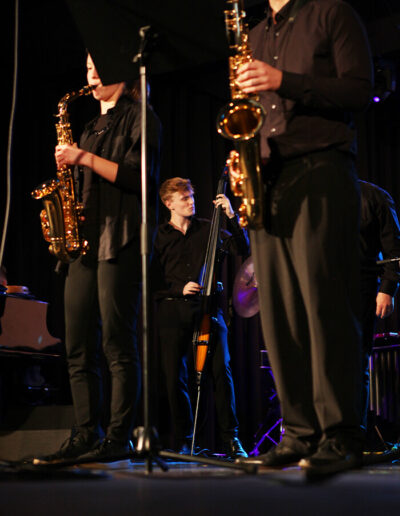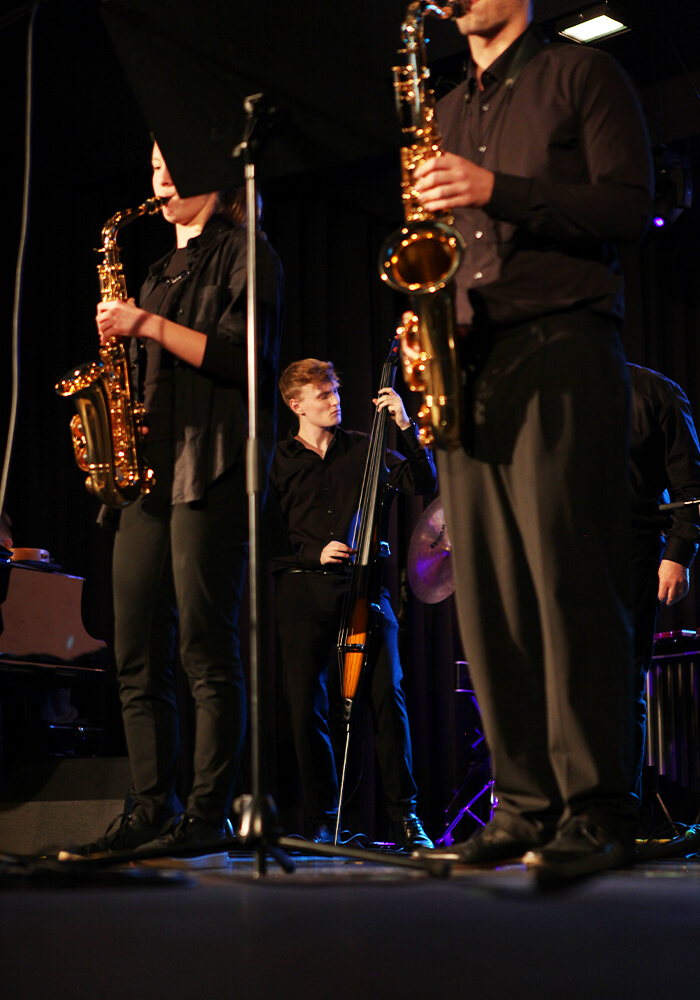 Diese Fähigkeiten werden im Einzelunterricht, vor allem aber auch in den beiden Jazzbands der Schule einstudiert und vertieft. Das Wichtigste dabei ist aber die Förderung der individuellen Spielweise. Gerade an unserer Schule (und gerade im Bereich Jazz/Popularmusik) gibt es so viele Schüler/innen, die eine hohe Begabung im Schreiben und Komponieren aufzeigen. Da ist es besonders wichtig, die eigene Note, die eigene musikalische Ausdrucksweise zu formen und weiter zu entwickeln.