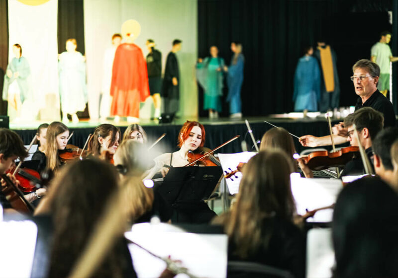 Am letzten Wochenende war es wieder so weit: Zwei Vorstellungen fanden am 21. und 22. Juni in der ausverkauften Stadthalle Ransbach-Baumbach statt. Die beiden Schulen beeindruckten das Publikum mit einem grandiosen Schauspiel. Das Sinfonieorchester und der Chor LaFilia des Landesmusikgymnasiums, geleitet von Winfried Vögele, traten gemeinsam mit der Abschlussklasse 12 und einigen GanztagsschülerInnen der Klassen 3-9 der Rudolf-Steiner-Schule Neuwied auf, die unter der künstlerischen Leitung von Silvia Vögele standen.