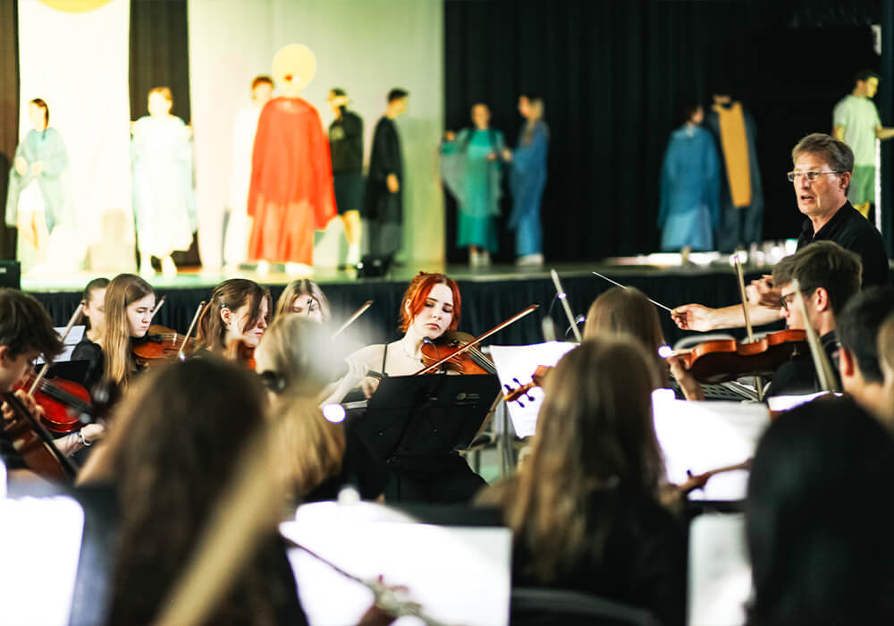 Möglichst vielen unserer Instrumentalisten soll Gelegenheit gegeben werden, das Orchesterspiel kennen und lieben zu lernen. Daher spielt unser Sinfonieorchester häufig jenseits des klassisch-sinfonischen Kanons interessante Arrangements von Filmmusiktiteln, die die gesamte großorchestrale Klangfarbenwelt ausschöpfen und zu nutzen wissen.
